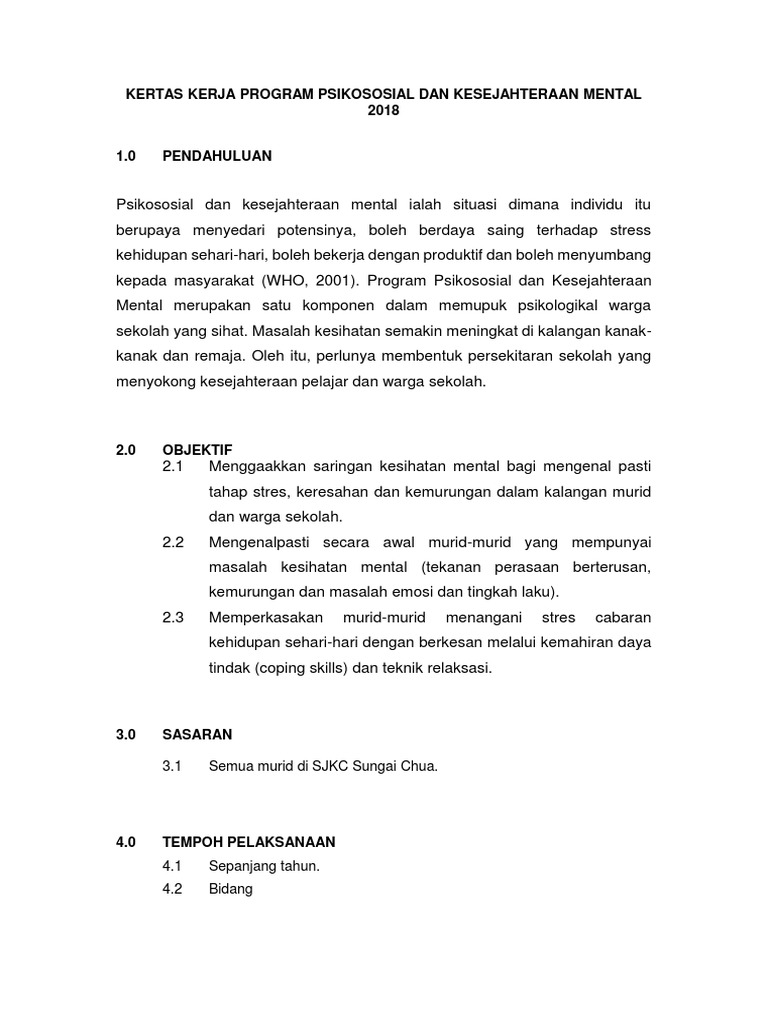 Kertas Kerja Program Psikososial Dan Kesejahteraan Mental Scrib Pdf